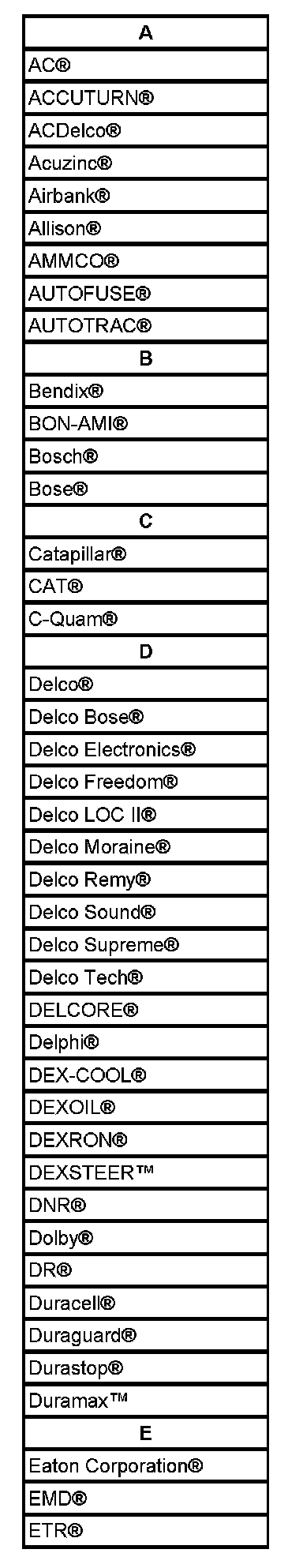 Listed are Registered Trademarks ((R)) or Non-Registered Trademarks ((TM)) which may appear in this service data.