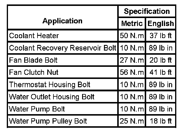 Fastener Tightening Specifications: