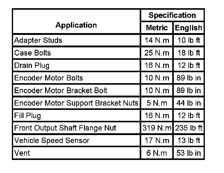 Fastener Tightening Specifications:
