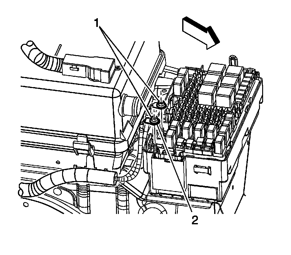5. Install the nut (1) securing the generator positive cable inner terminal to the underhood fuse block.