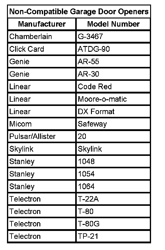 IMPORTANT: Do not use the garage door opener (GDO) with any garage door opener that does not have the stop and reverse safety feature. This includes any garage door opener model manufactured before April 1, 1982.