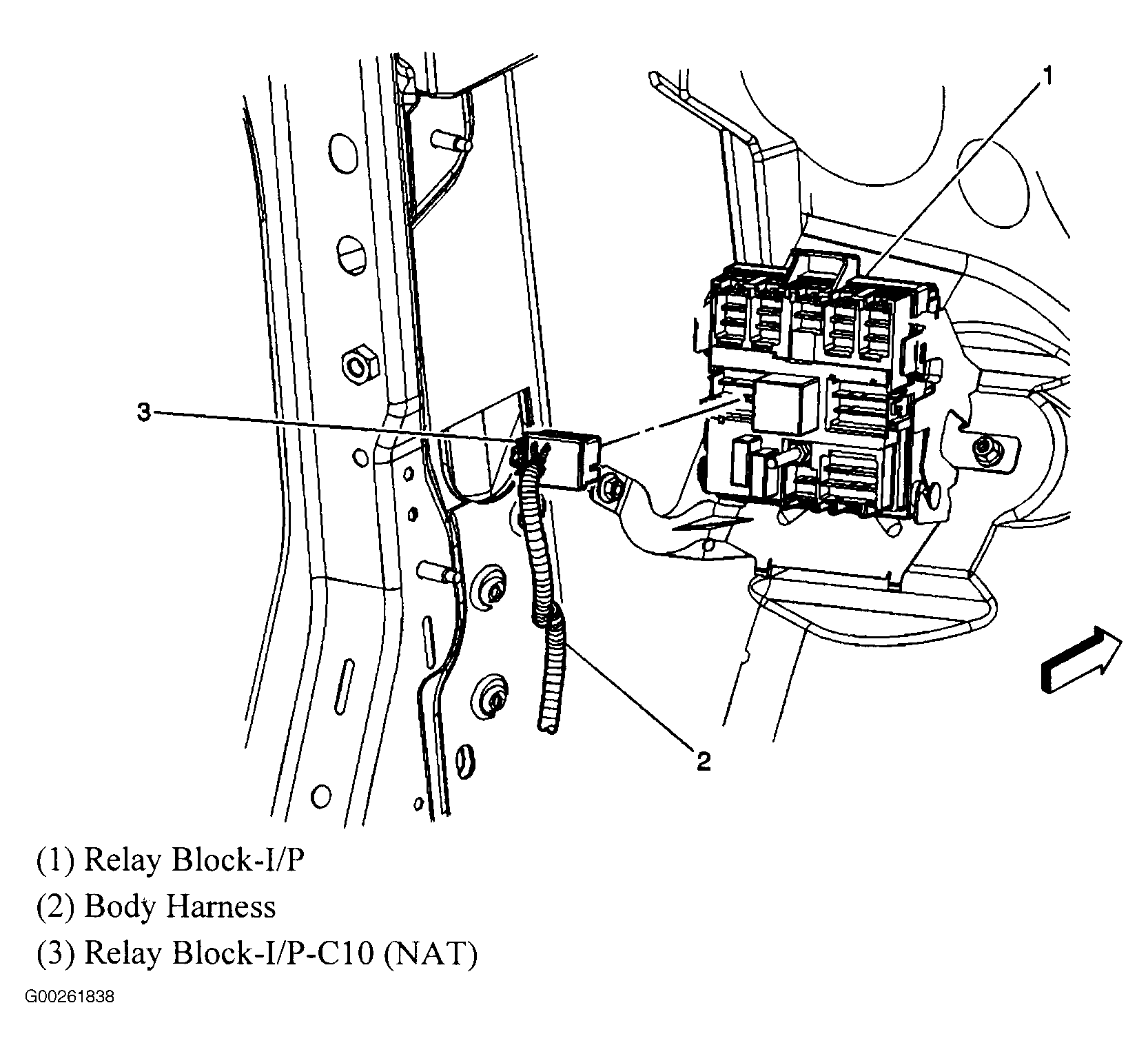 | I/P Relay Block | On left side of dash, near left kick panel. See Figure. |