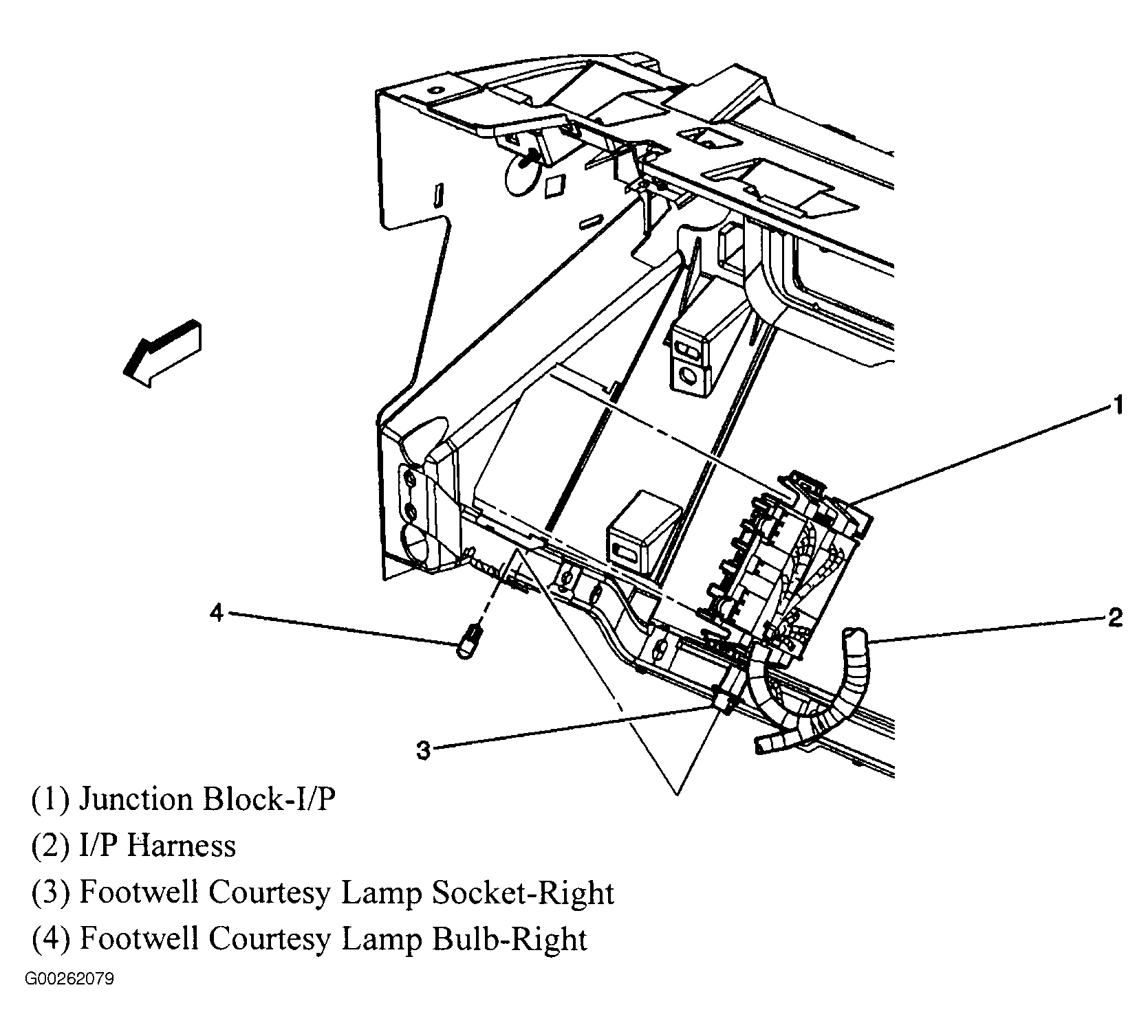 | I/P Junction Block | On lower right side of dash. See Figure. |