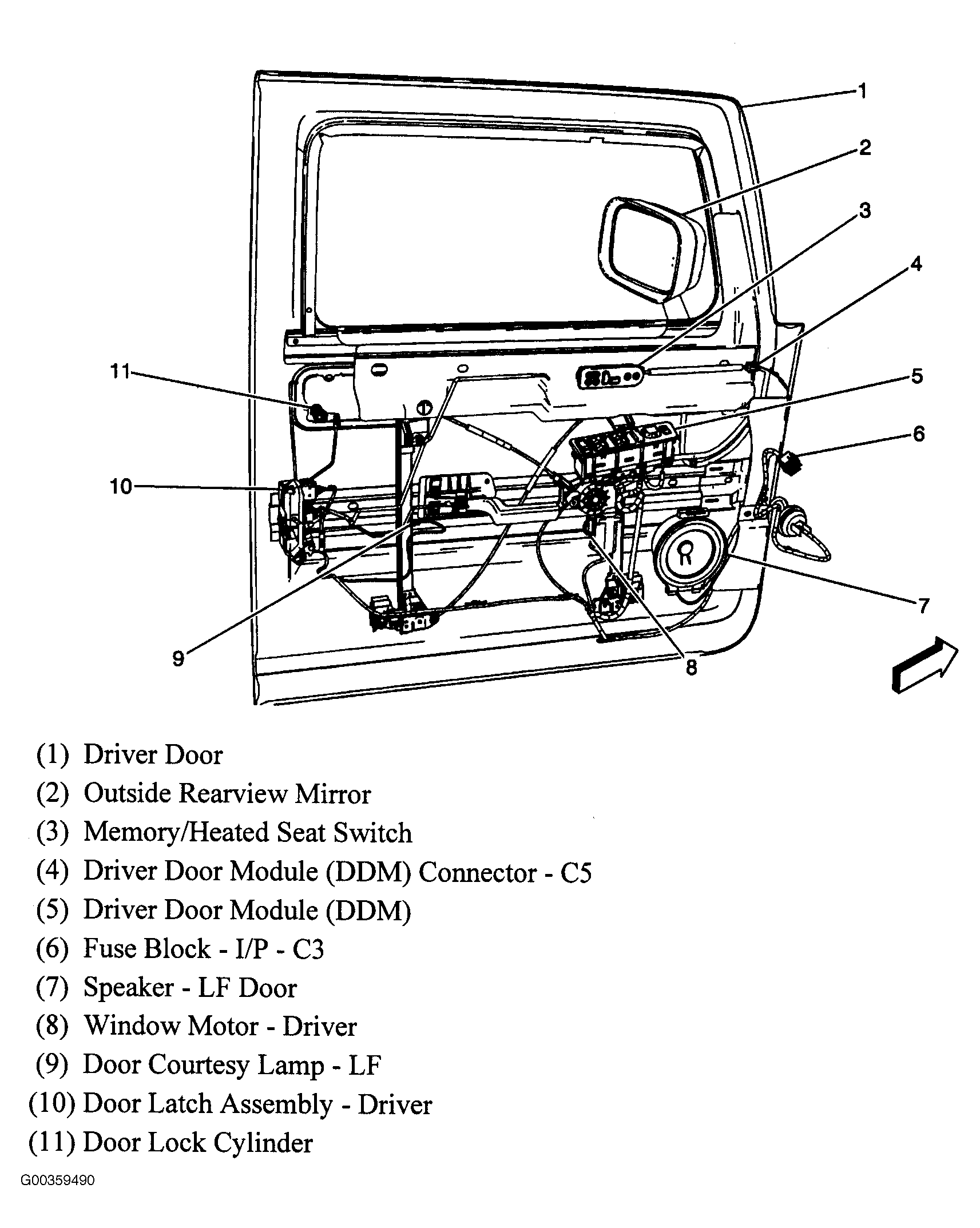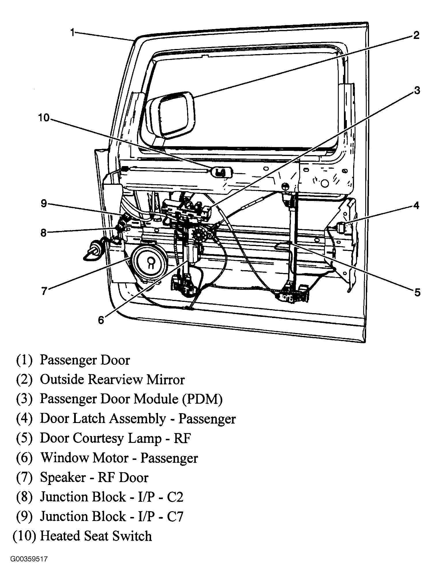 | Passenger Door Module (PDM) | In passenger door. See Figure. |