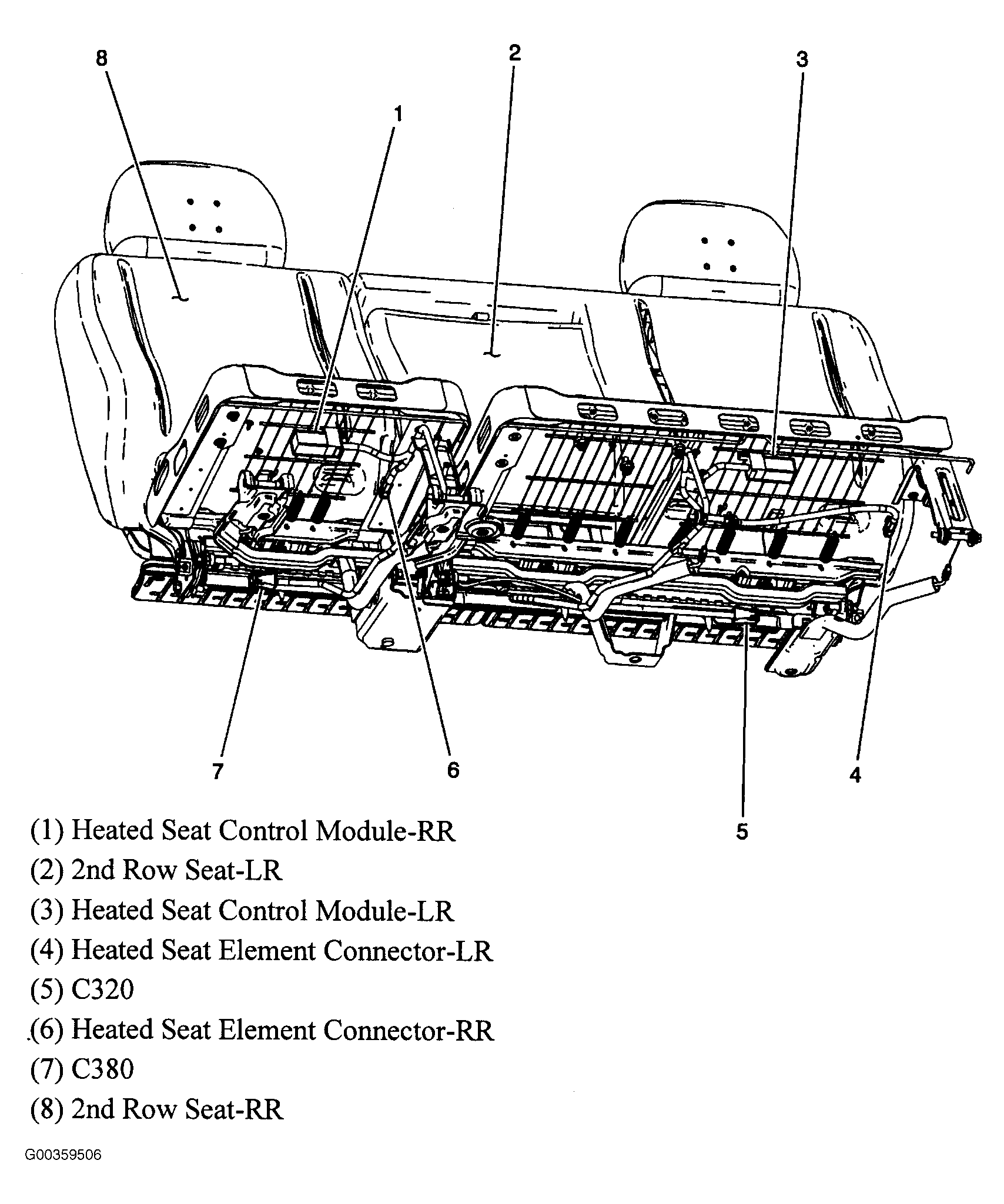 | Heated Seat Control Module-RR | Under right side of 2nd row seat. See Figure. |