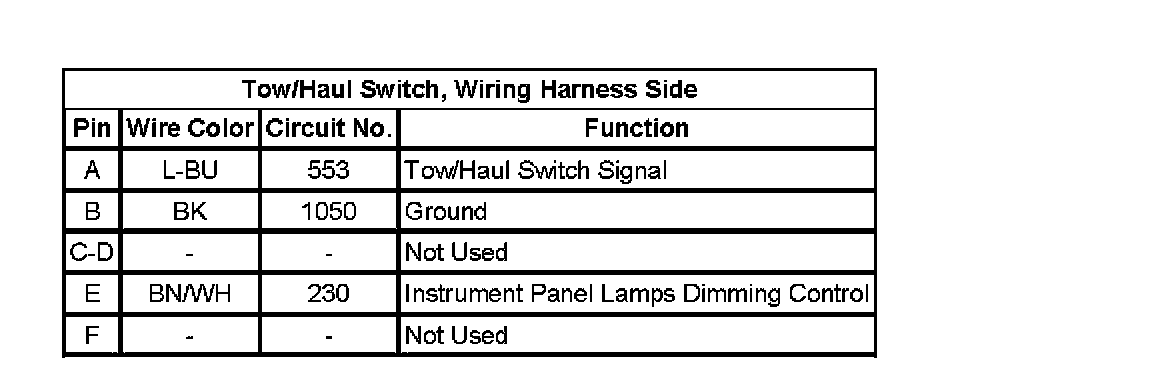 Tow/Haul Switch, Wiring Harness Side: