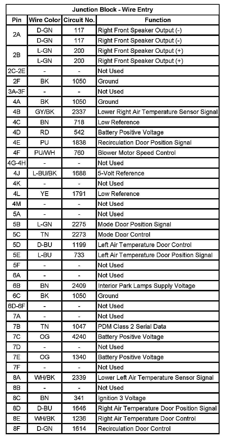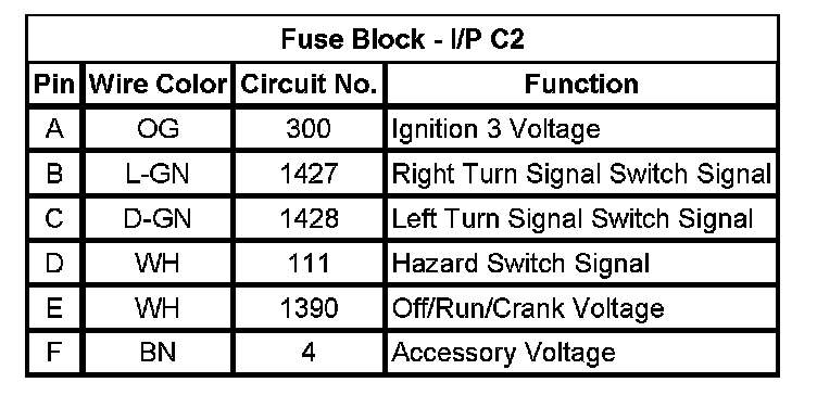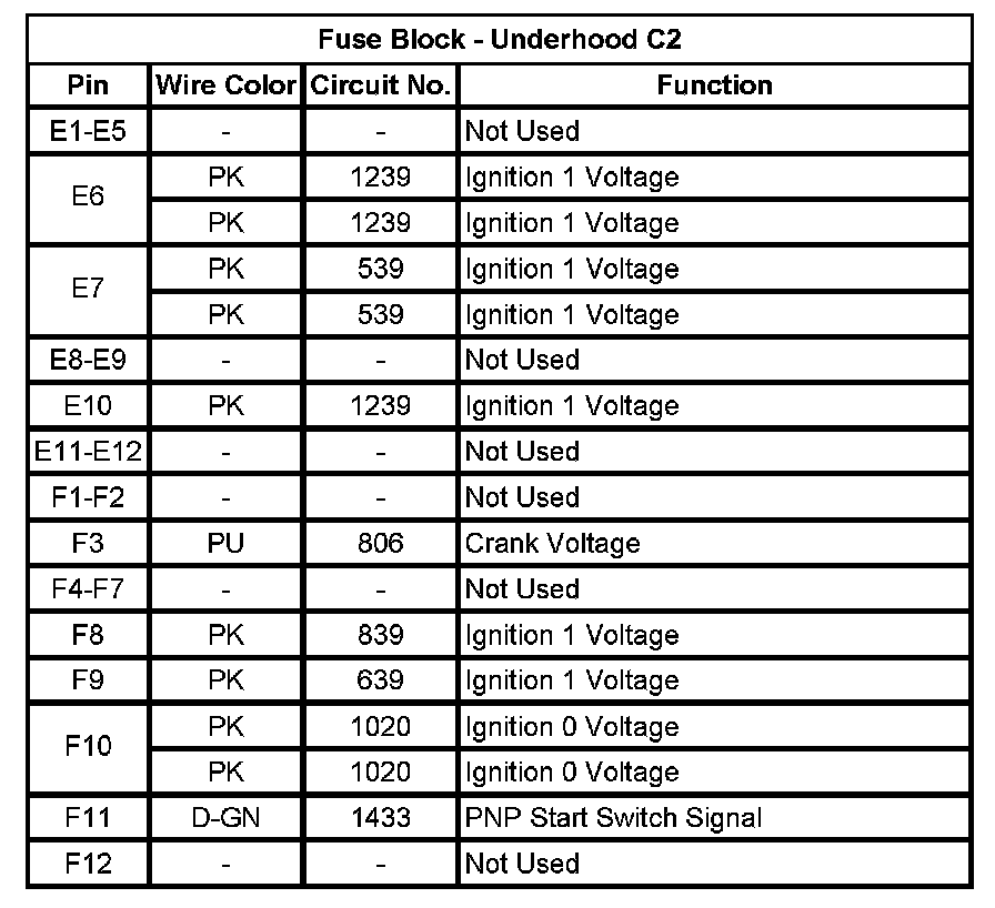 Fuse Block - Underhood C2 (Pin E1 To F12):