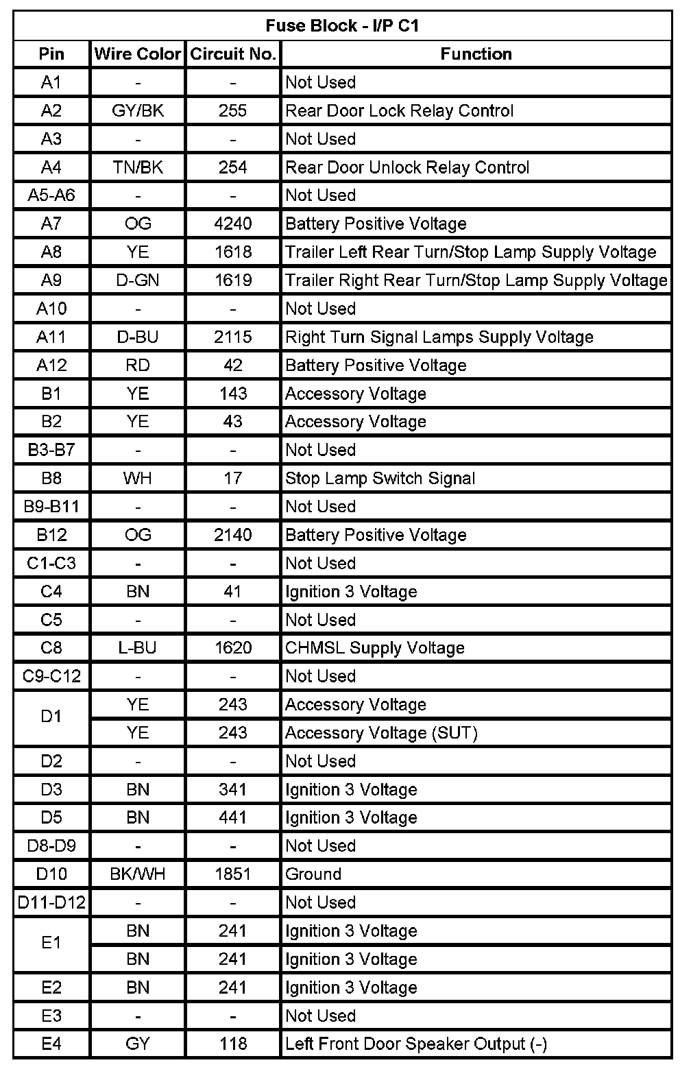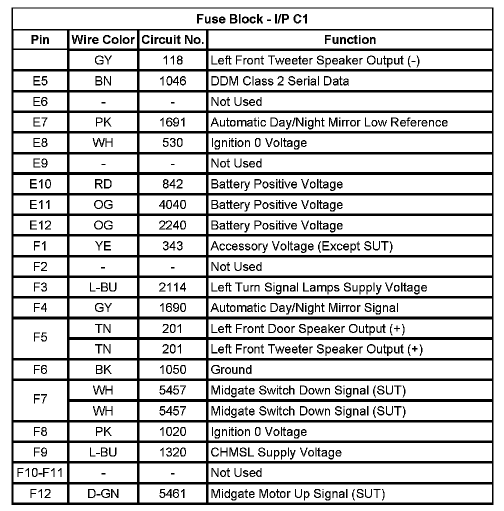 Fuse Block - I/P C1 (Pin E5 To F12):