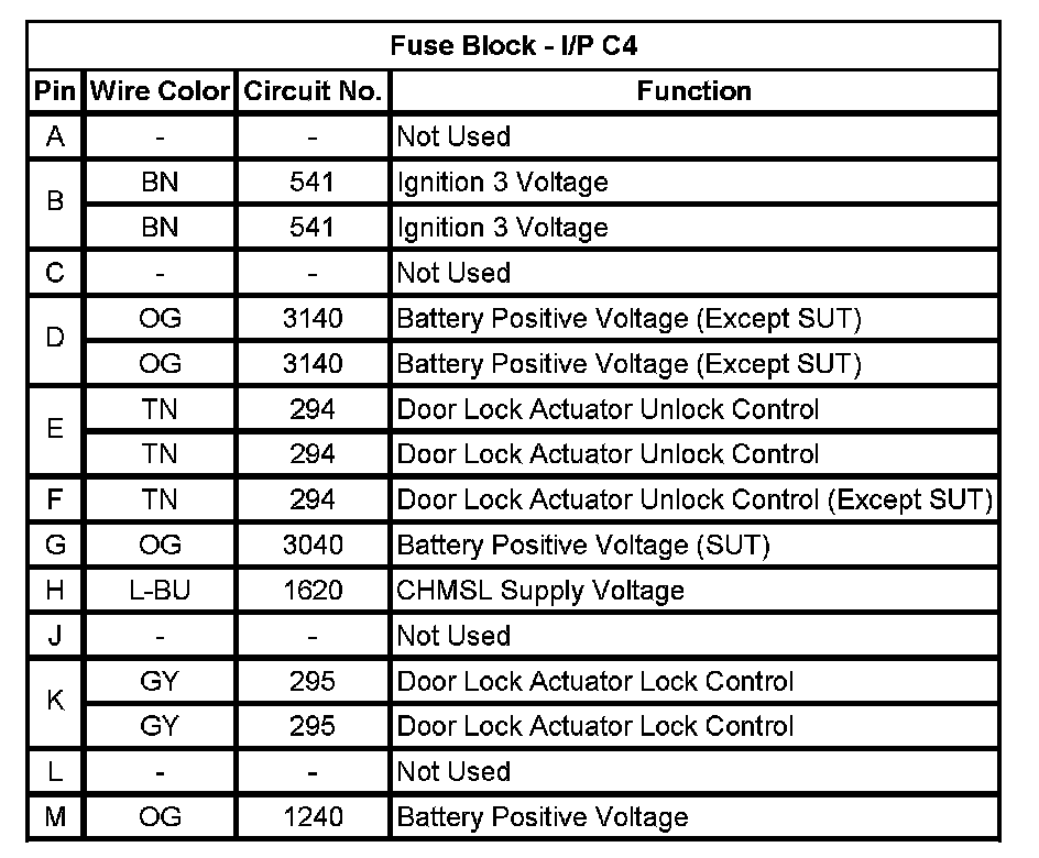 Fuse Block - Underhood C1 (Pin D4 To F12):