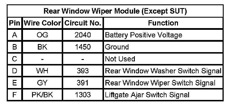 Rear Window Wiper Module (Except SUT)