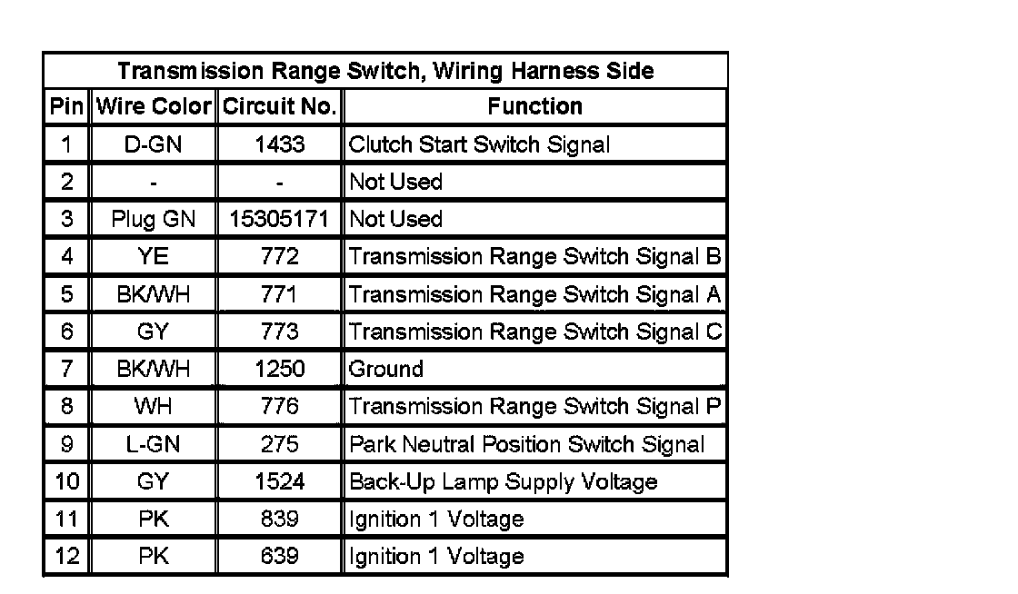Transmission Position Sensor/Switch: Diagrams