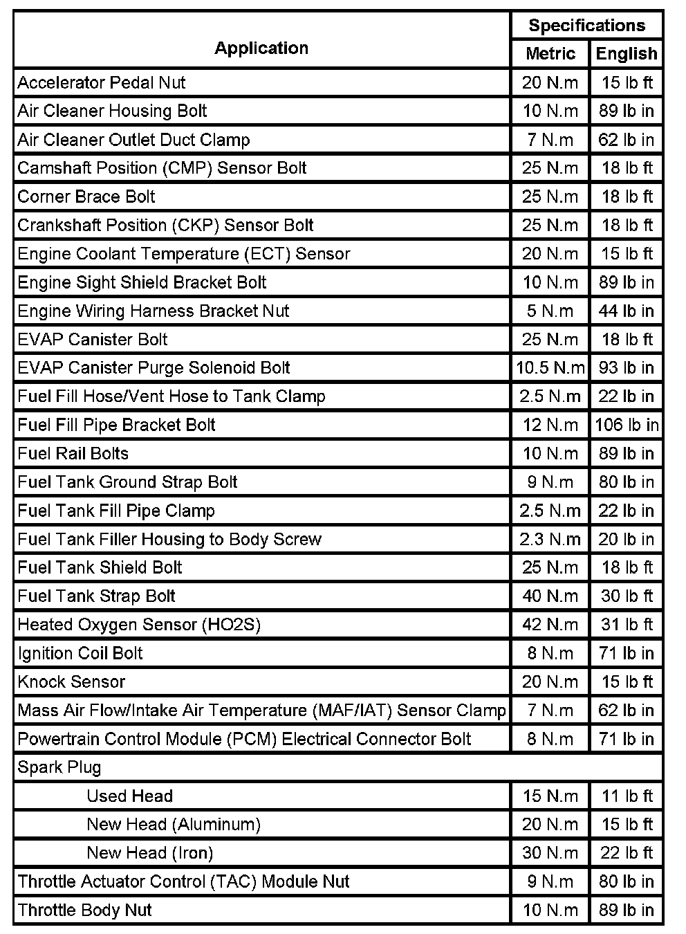 Fastener Tightening Specifications