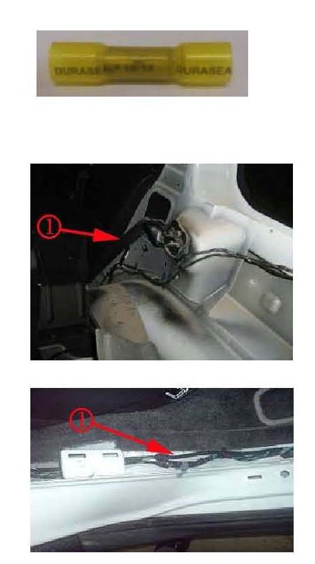11. Black wire (1) of the trailer module harness to the Black wire on the accessory wire for GND.