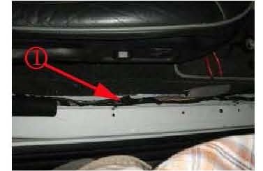 1. Remove plastic clip (with "airbag" embossment) from rear upper garnish trim panel.