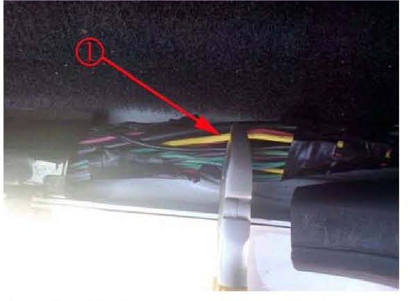 14. Secure the trailer module harness (1) to the main body wiring harness with at least 5 cable ties evenly spread (from the trailer module mounting location to the front door sill)