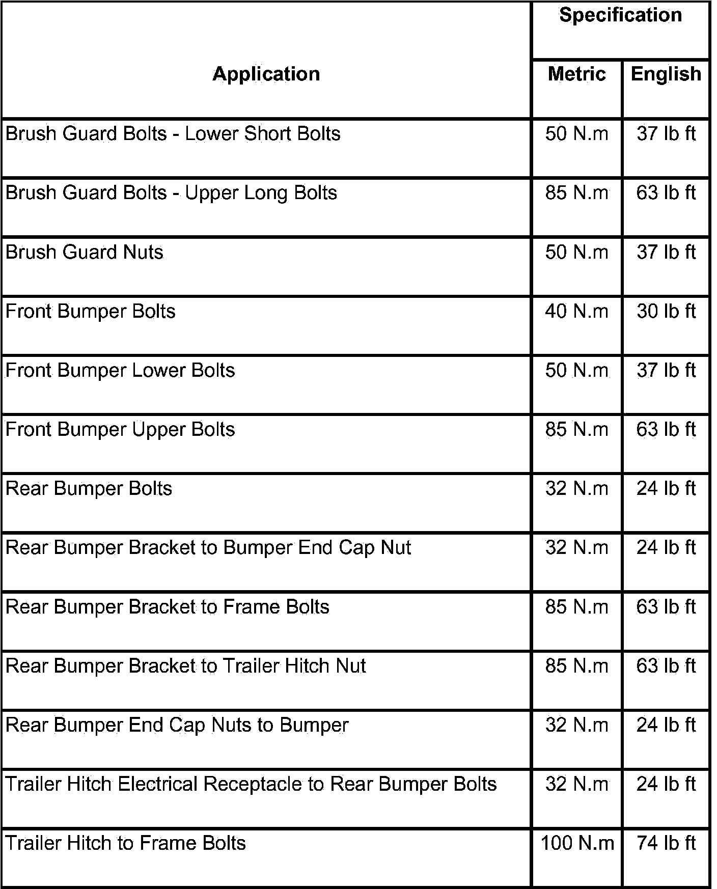 Fastener Tightening Specifications