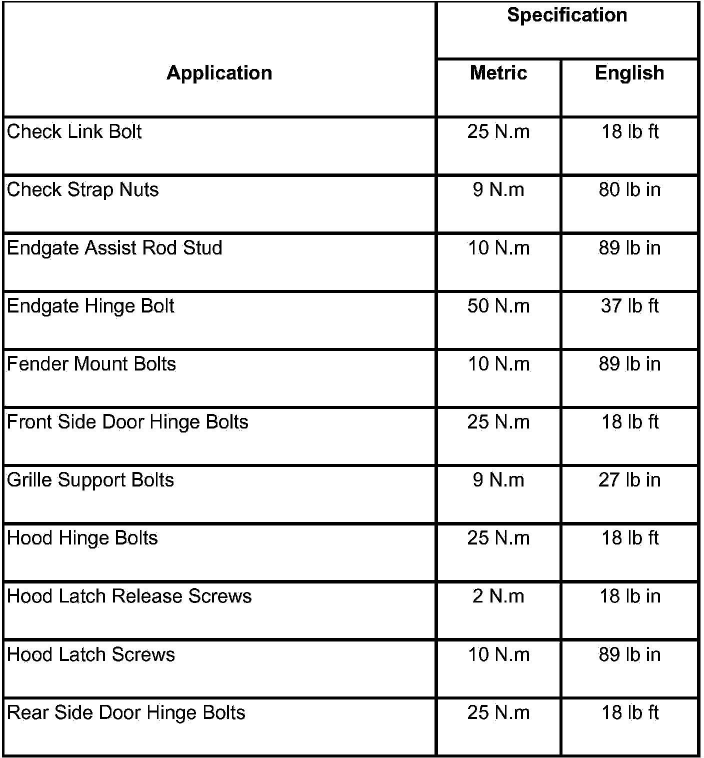 Fastener Tightening Specifications