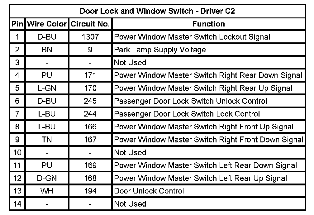 Door Lock and Window Switch - Driver C2