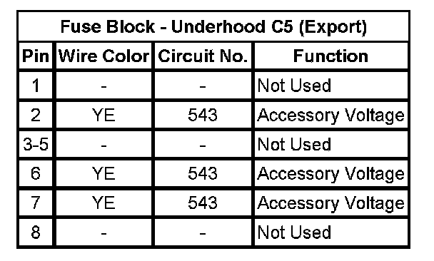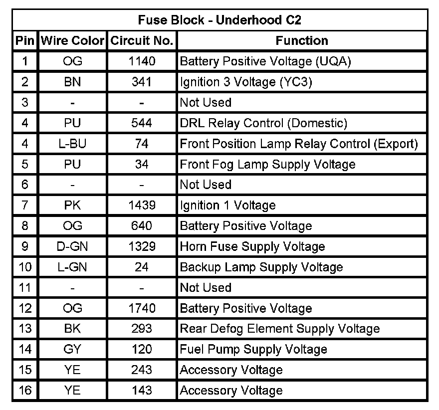 Fuse Block - Underhood C2 (Pin 1 To 16):