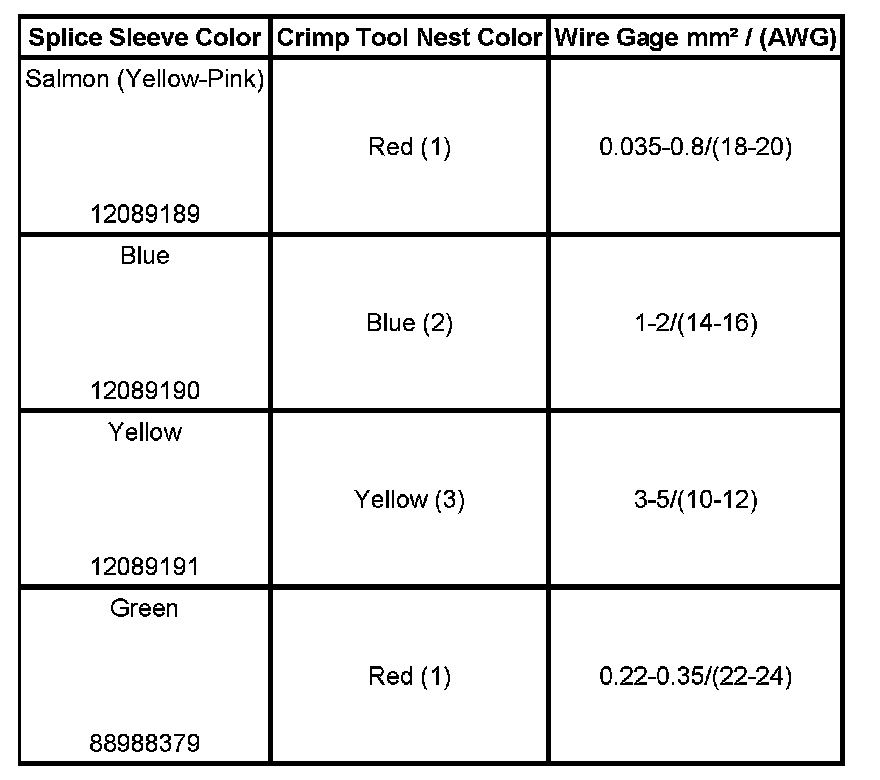 4. Select the proper DuraSeal splice sleeve according to the wire size. Refer to the above table at the beginning of the repair procedure for the color coding of the DuraSeal splice sleeves and the crimp tool nests.