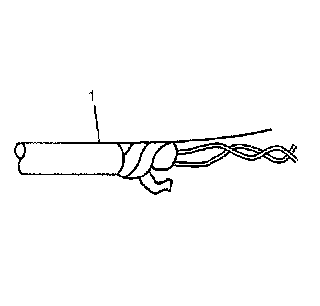 1. Remove the outer jacket (1). Use care not to cut into the drain wire of the mylar tape.