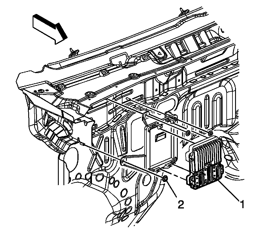 1. Install the PCM (1) into the PCM mounting bracket, allowing the tabs to fully engage.