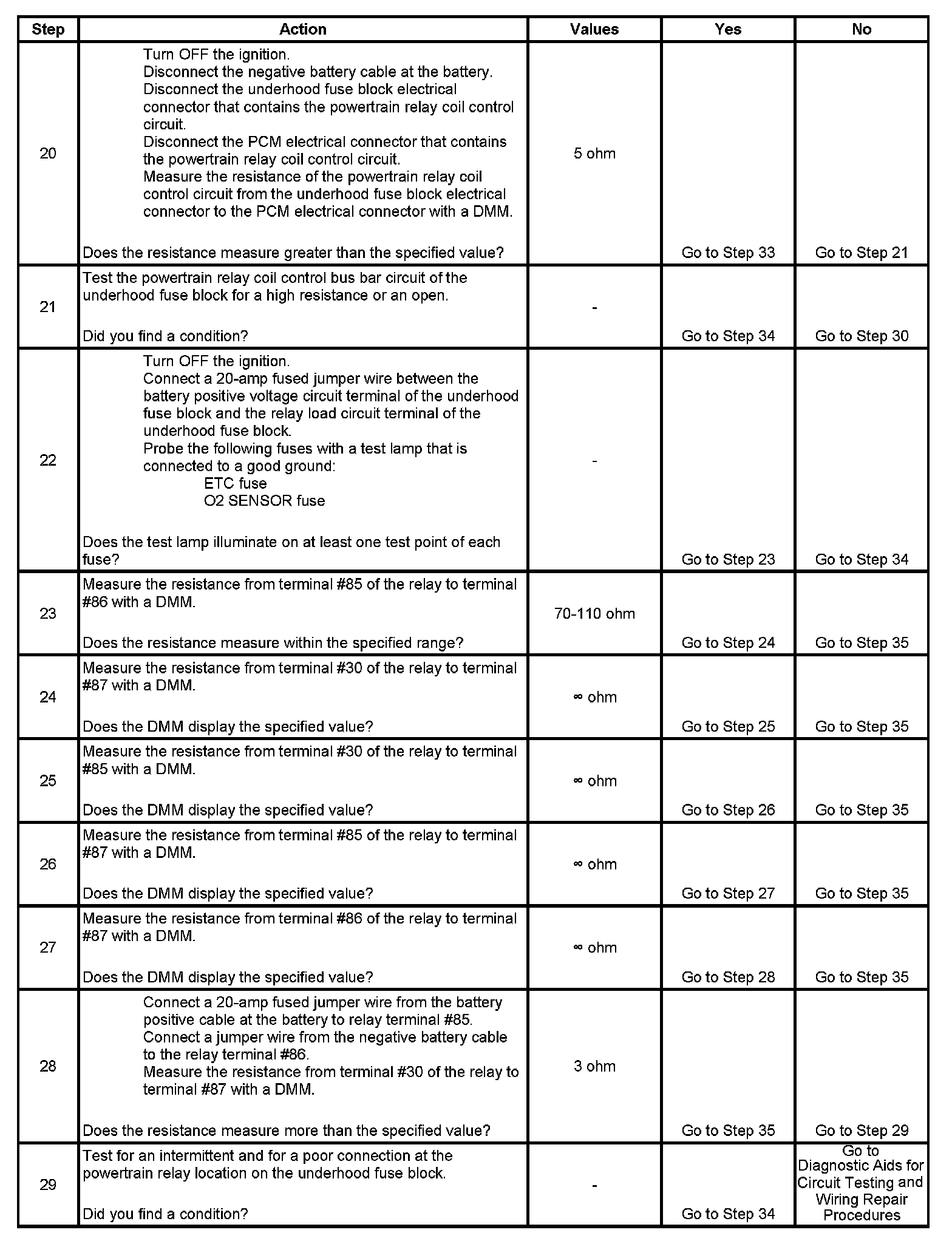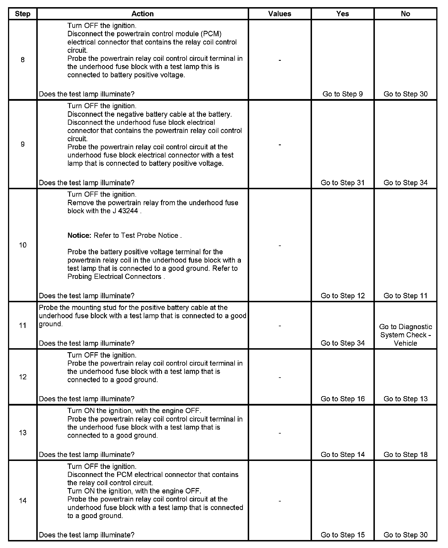 The powertrain relay system diagnosis table assumes that the vehicle battery if fully charged. Refer to Battery Inspection/Test (Non-HP2). Component Tests and General Diagnostics