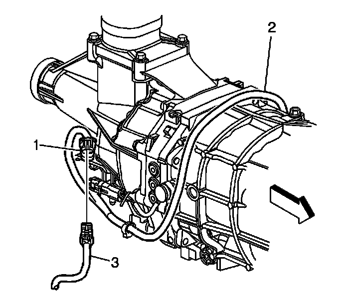 2. Disconnect the heated oxygen sensor (HO2S) electrical connector (3) from the engine wiring harness connector (1).