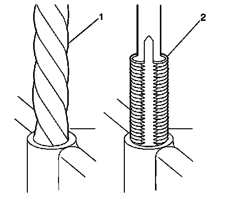 * The use of a cutting type fluid GM P/N 1052864 (Canadian P/N 992881), WD 40(R), or equivalent, is recommended when performing the drilling and tapping procedures.