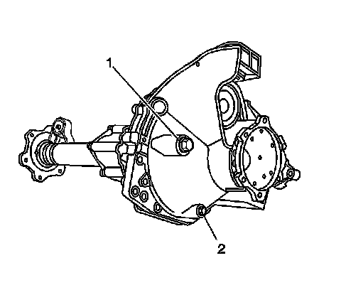 6. Remove the front axle fill plug (1).