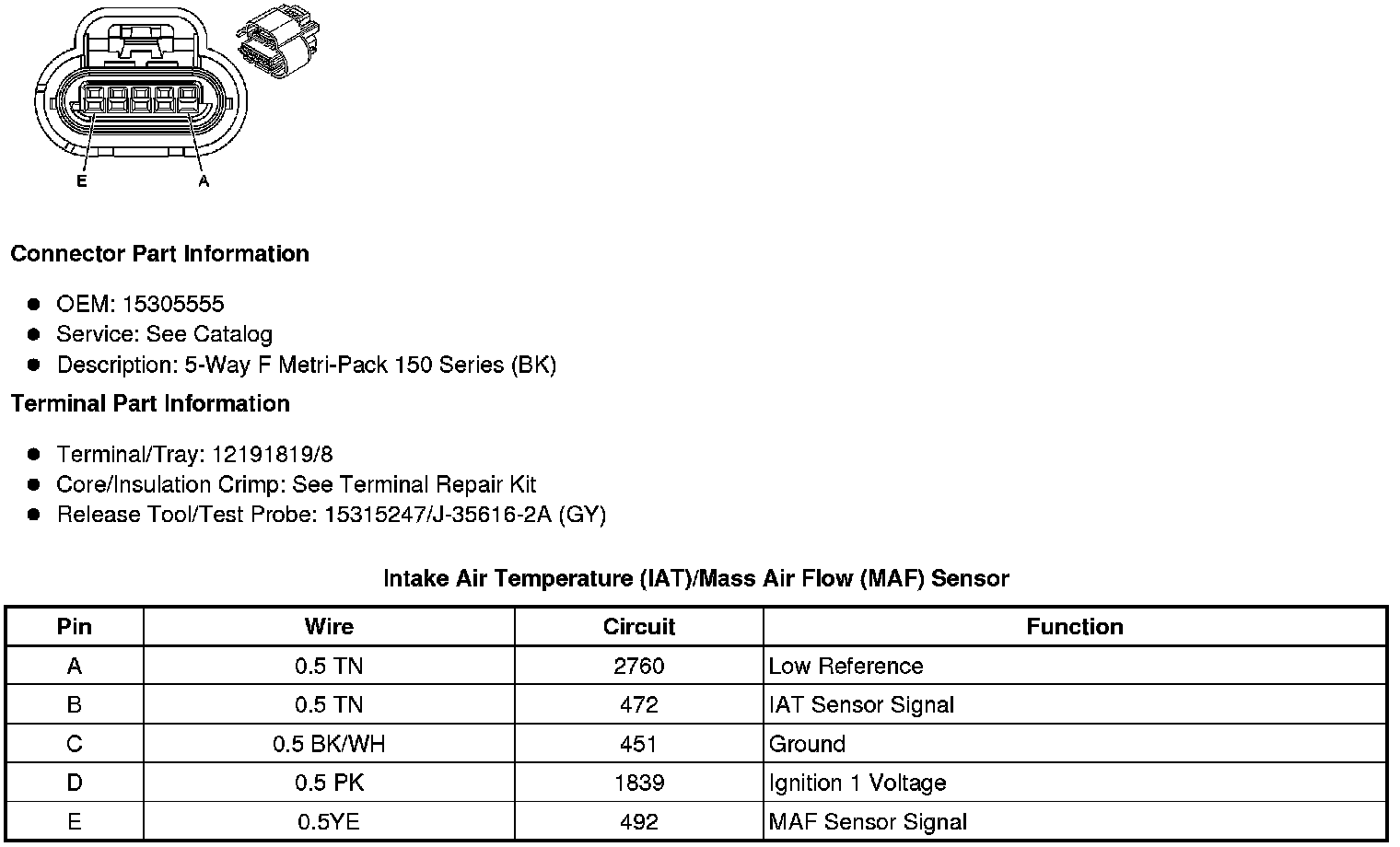 Intake Air Temperature (IAT)/Mass Air Flow (MAF) Sensor