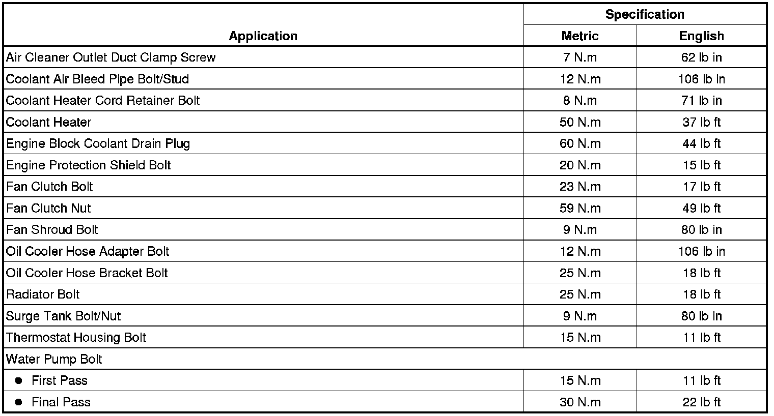 Fastener Tightening Specifications