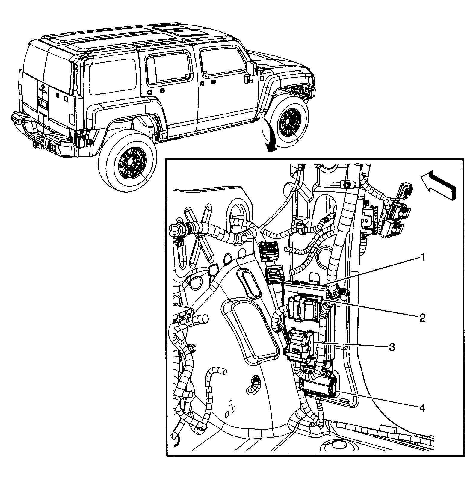 | Transfer Case Shift Control Module | Behind glove box. See Figure. |