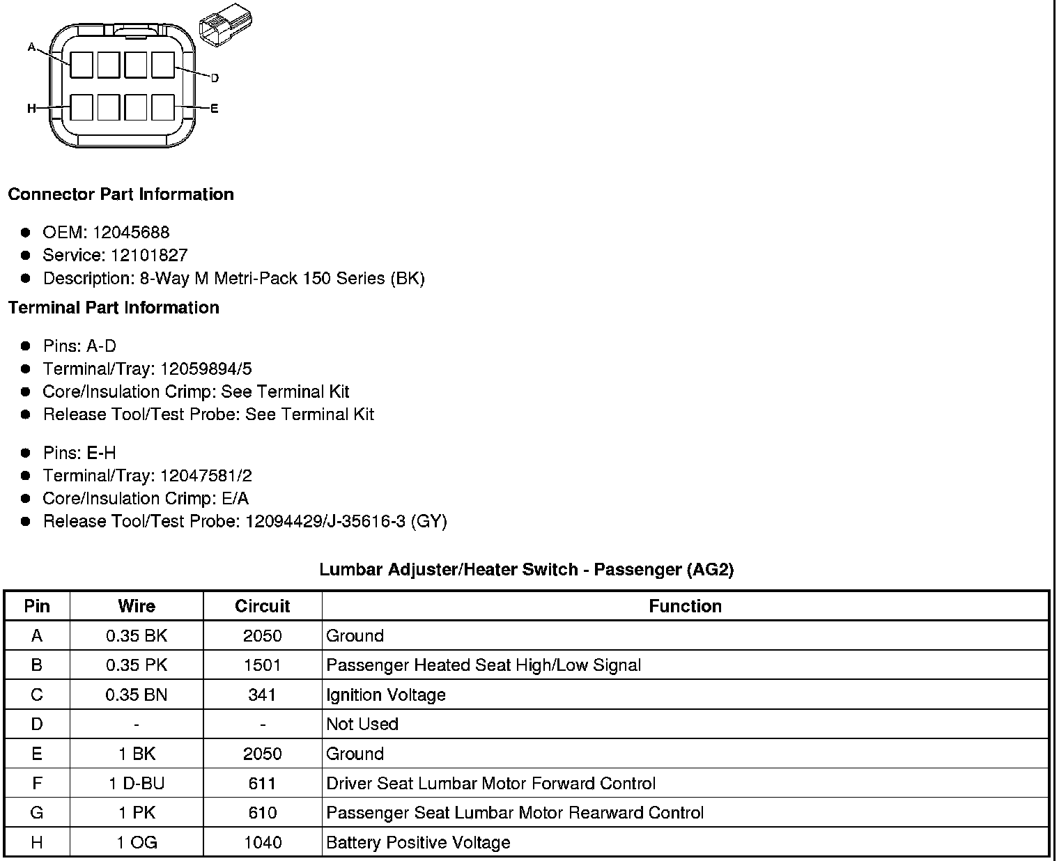 Lumbar Adjuster/Heater Switch - Passenger (AG2)