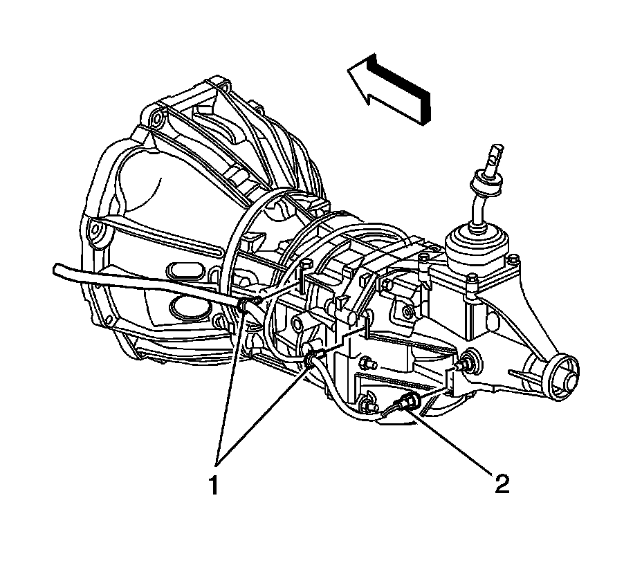 2. Disconnect the vehicle speed sensor (VSS) electrical connector (2).