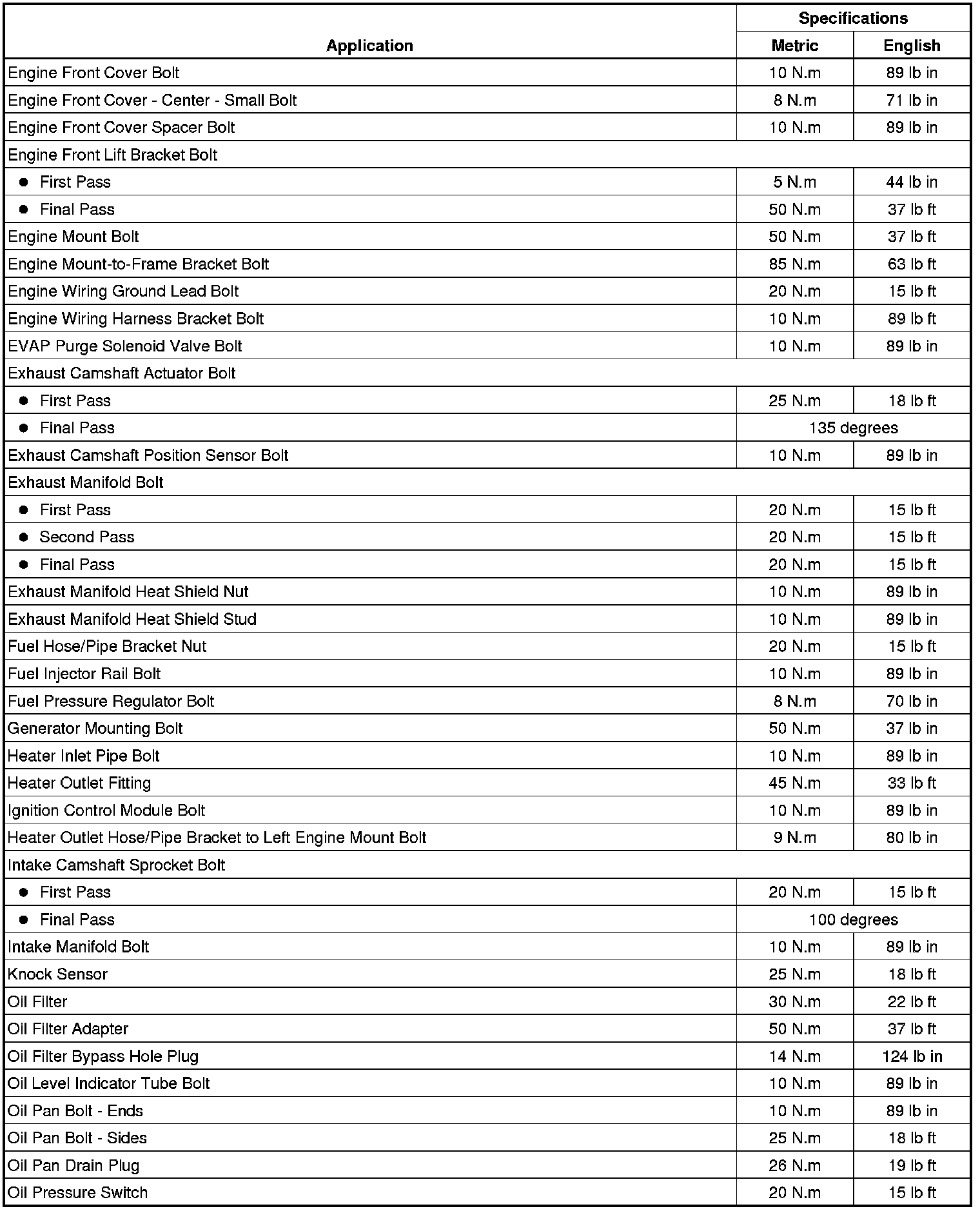 Fastener Tightening Specifications