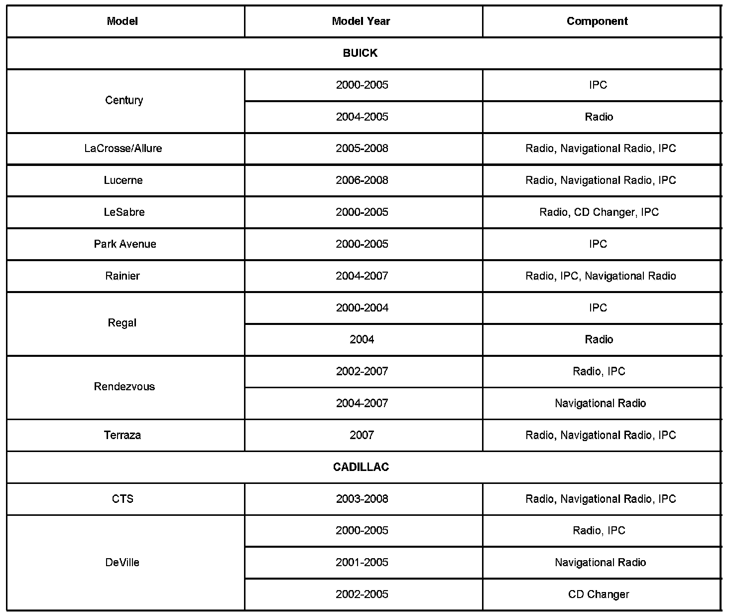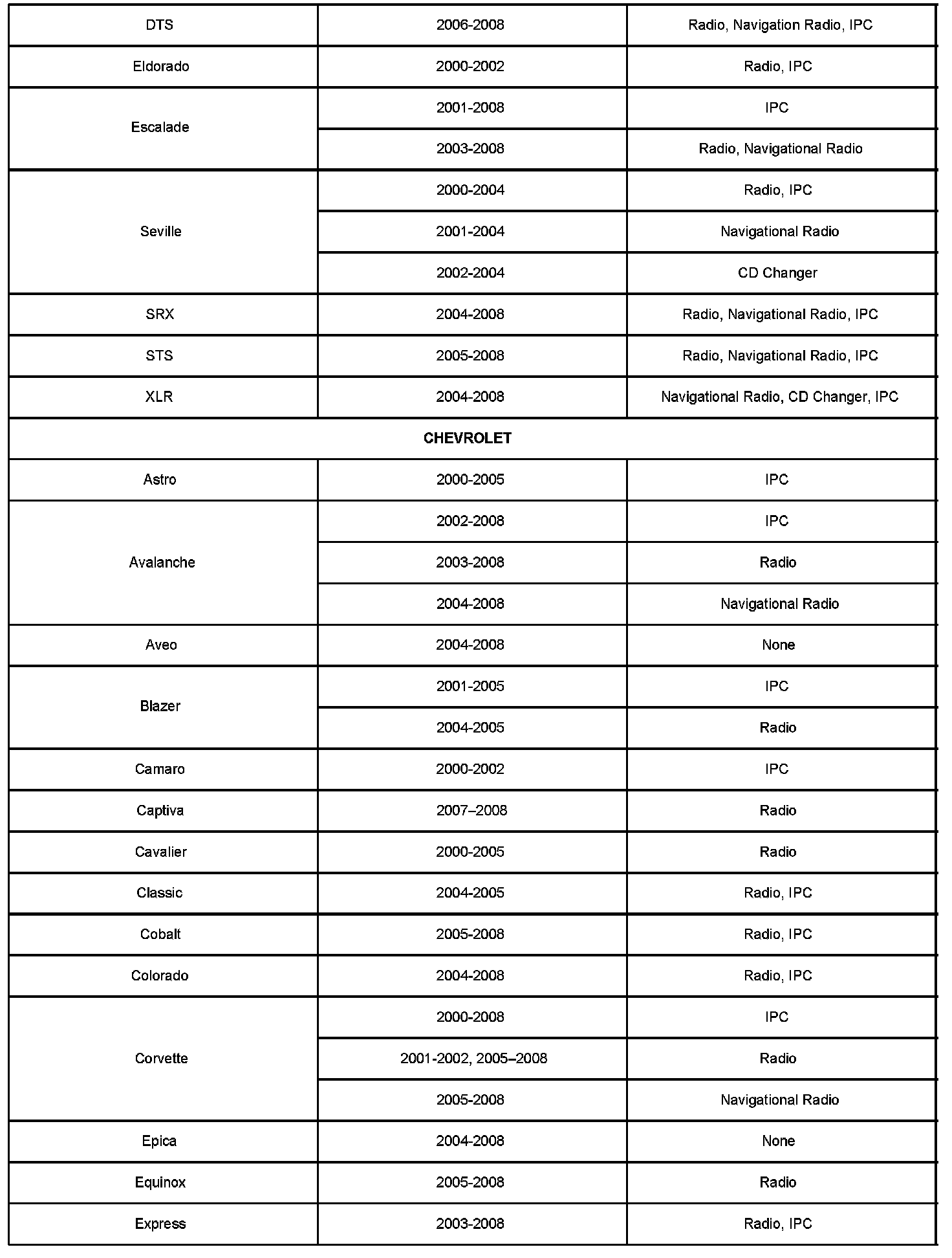 The Tech 2(R) should be used to retrieve the part number of the radio CD changer and I/P cluster from the vehicles listed in the table above.