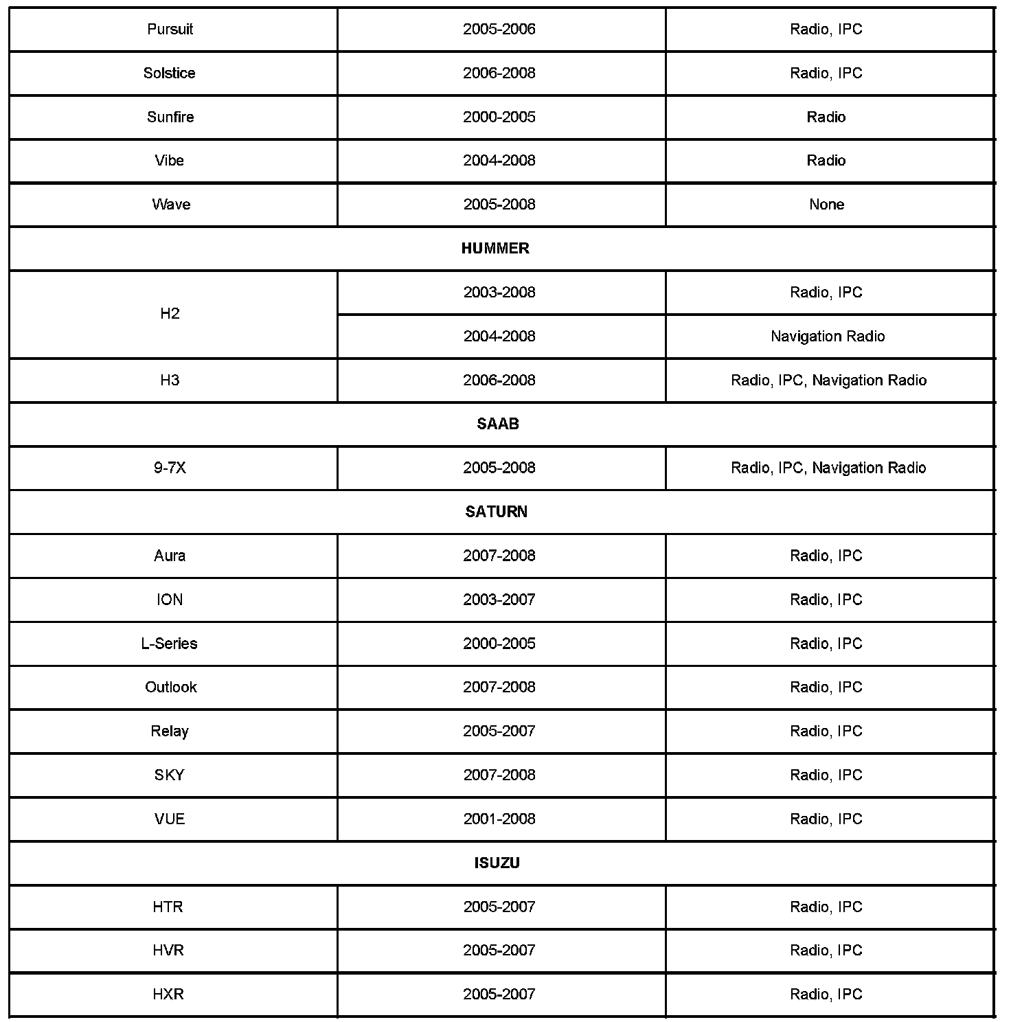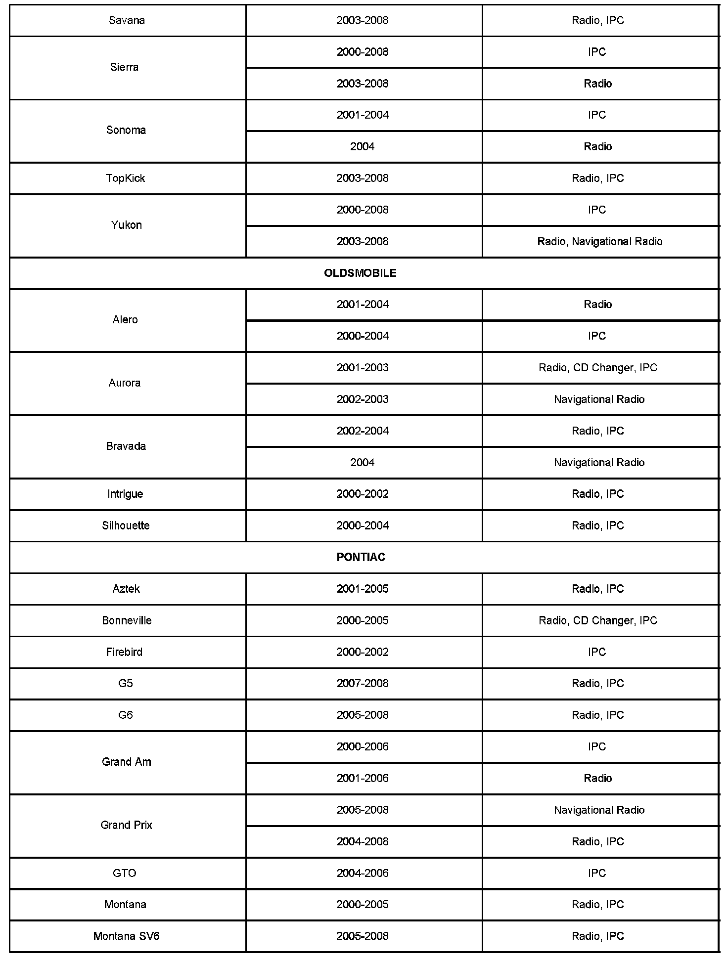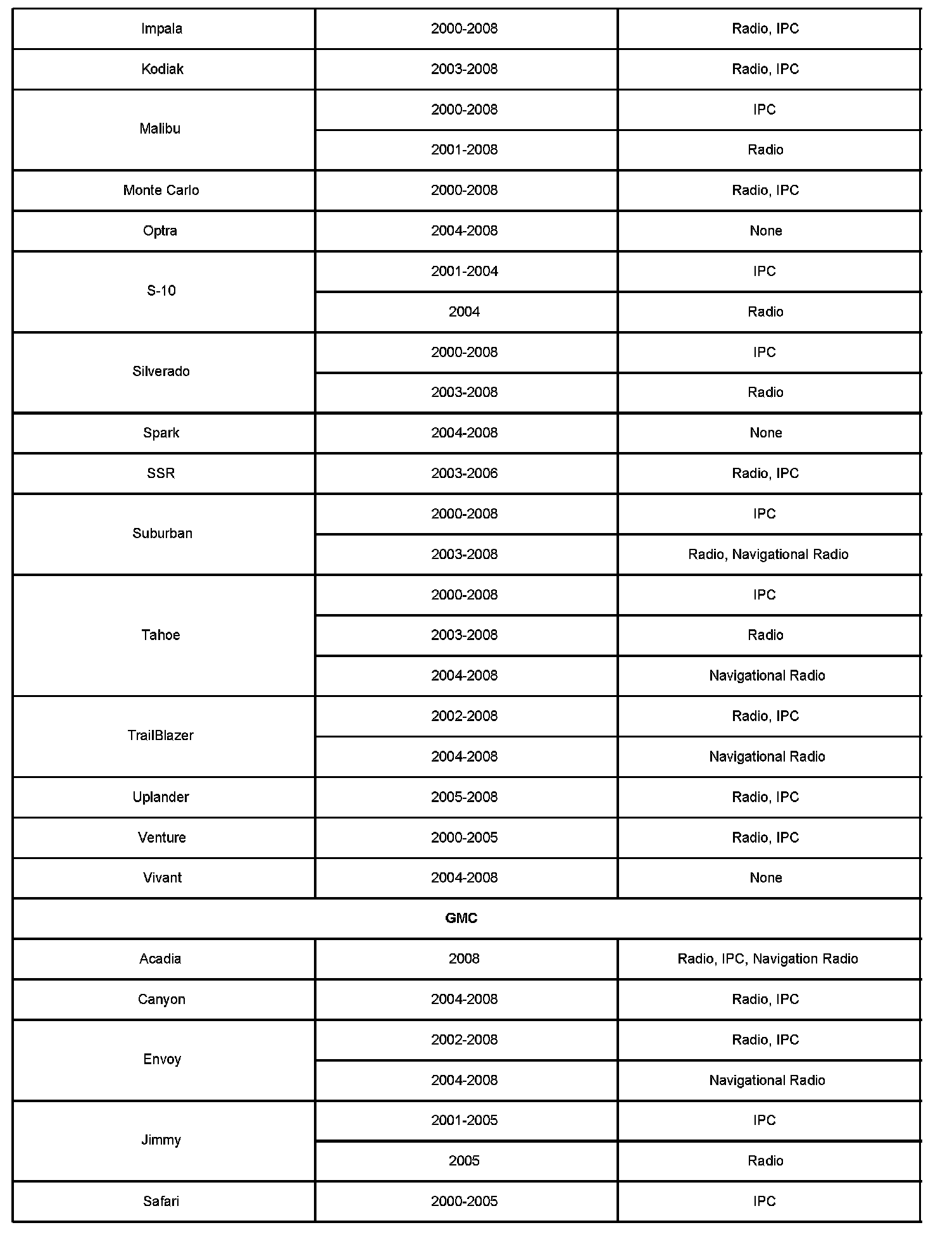 2000-2008 Passenger Cars and Trucks (Including Saturn)