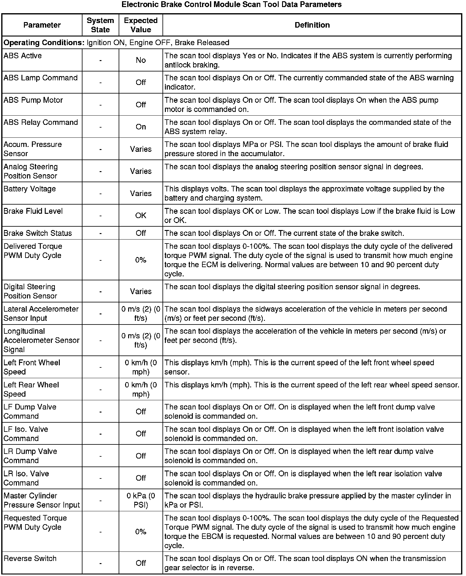 Electronic Brake Control Module Scan Tool Information