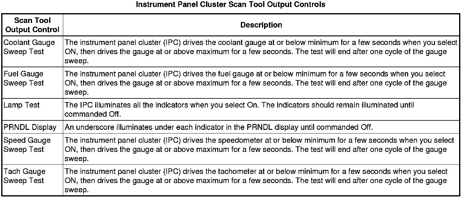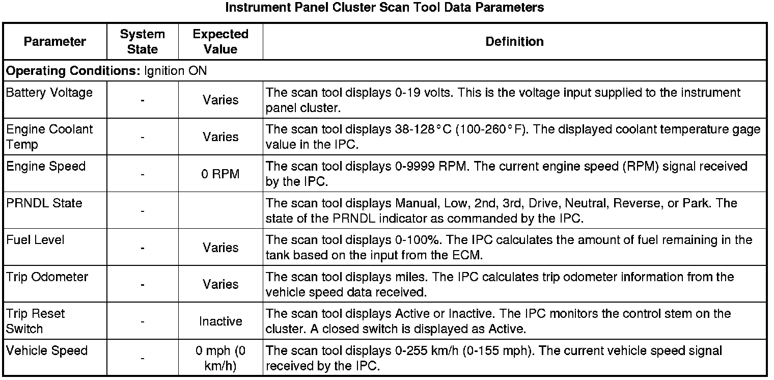 Instrument Cluster Scan Tool Information