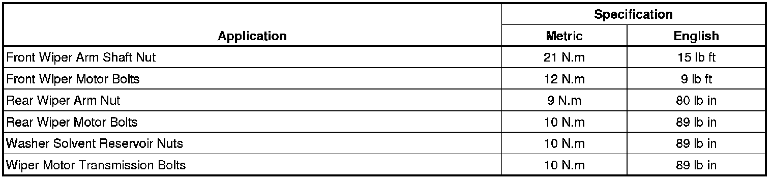 Wiper and Washer Systems: Specifications