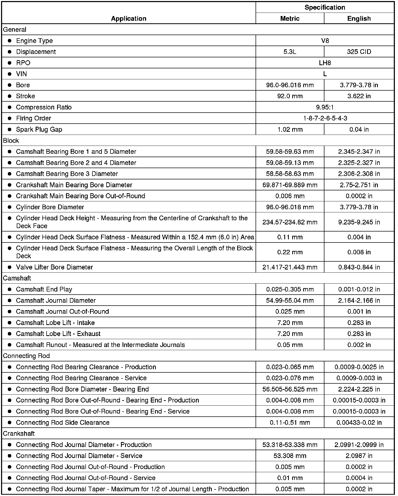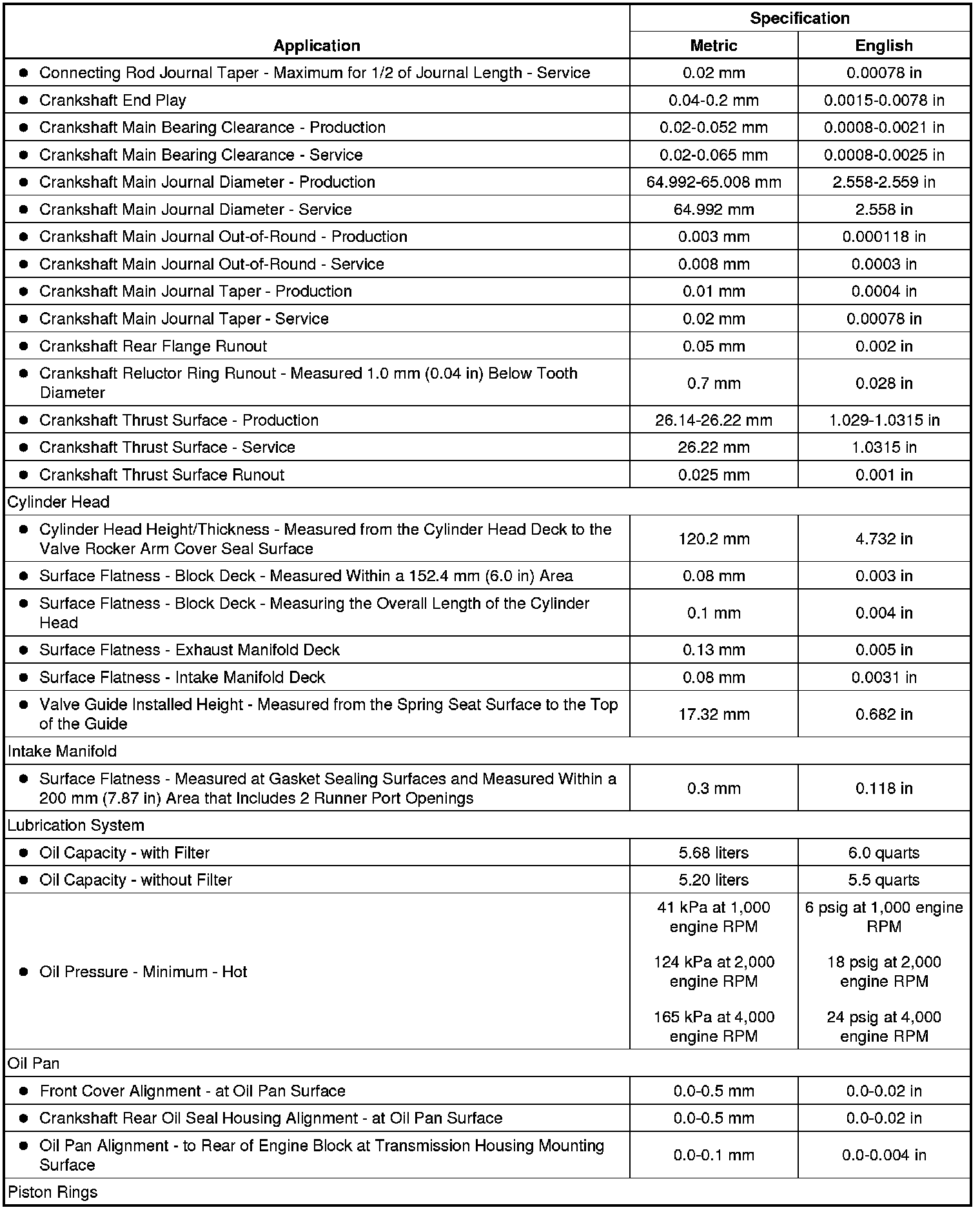 Engine Mechanical Specifications