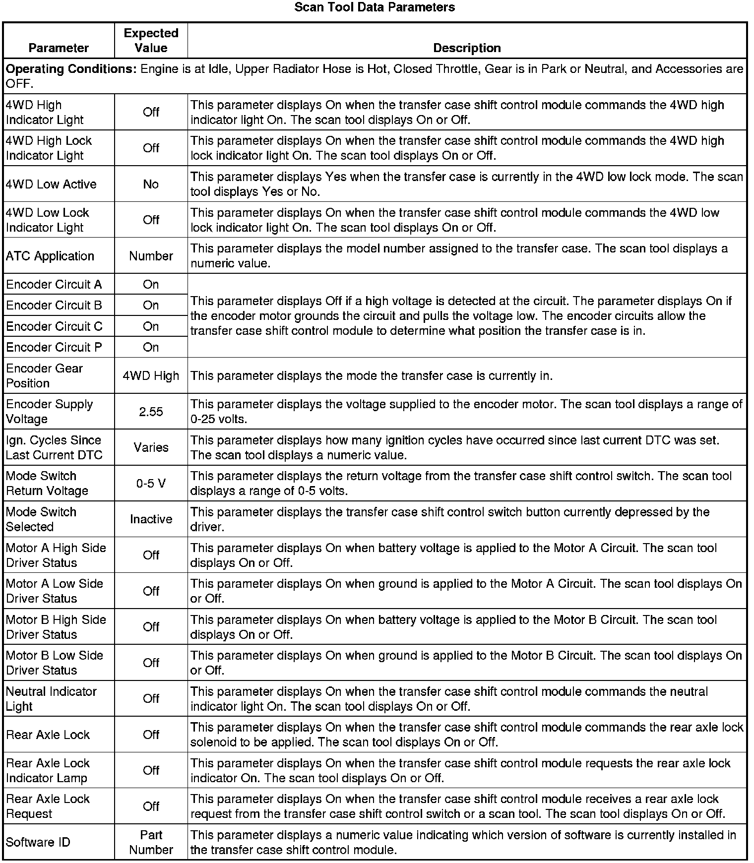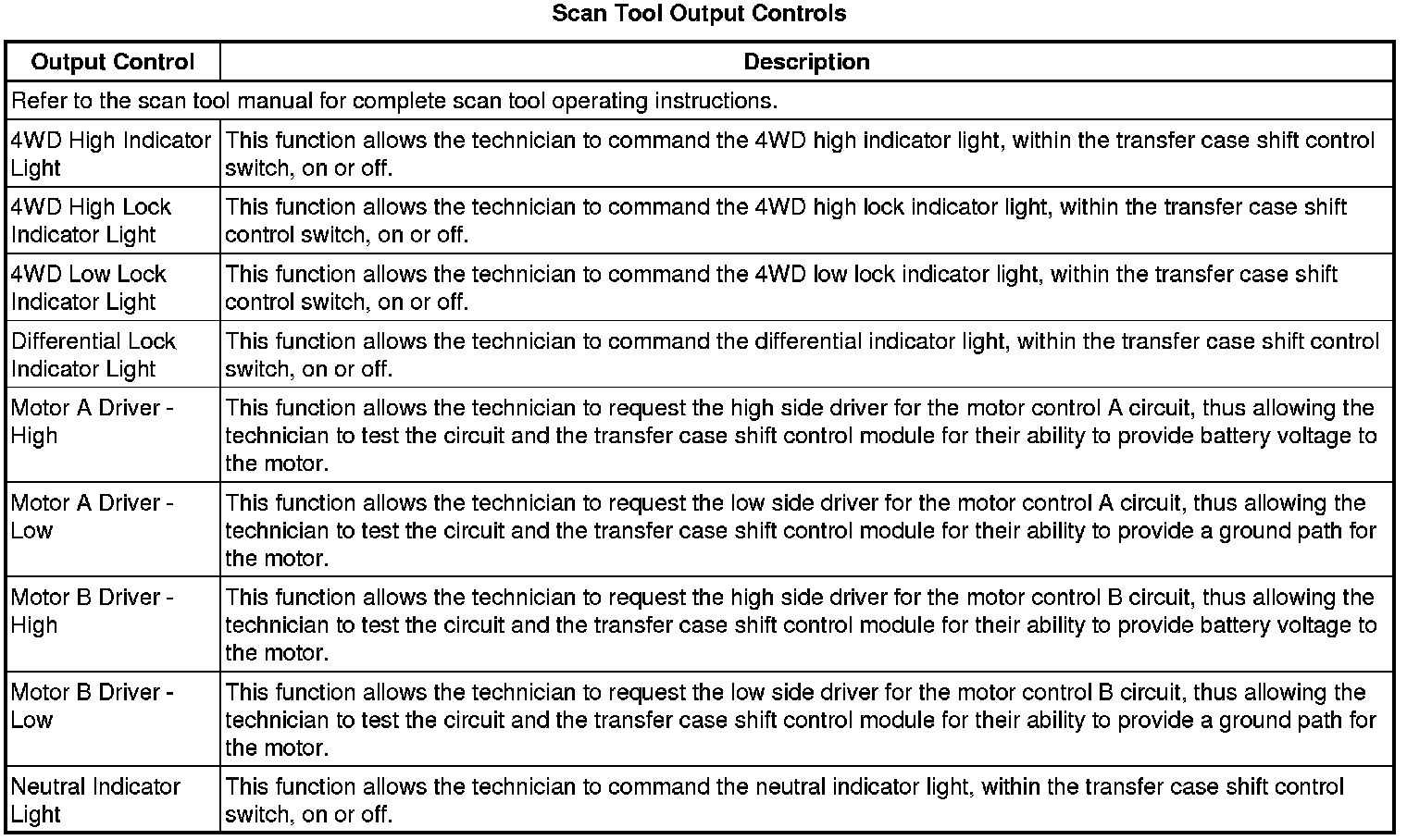 Transfer Case Shift Control Module Scan Tool Information