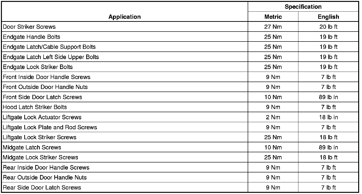 Fastener Tightening Specifications
