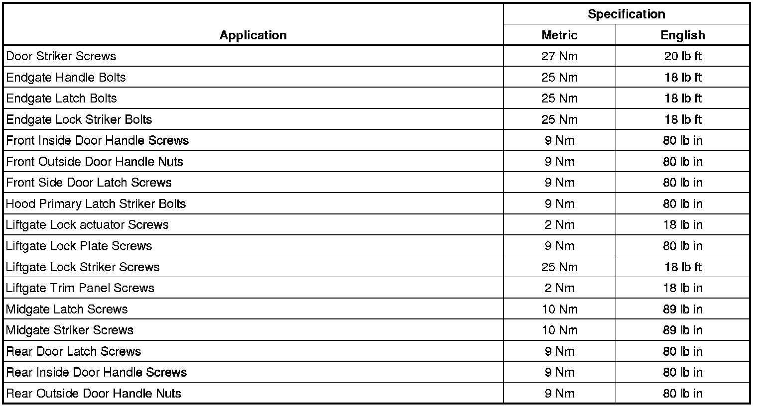 Fastener Tightening Specifications