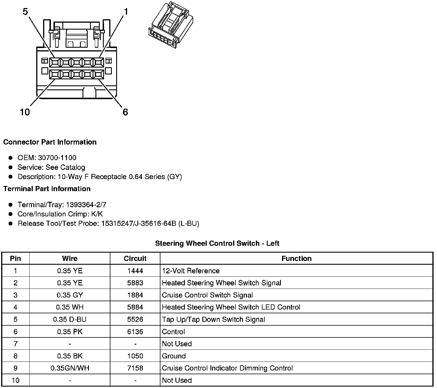 Steering Wheel Control Switch - Left