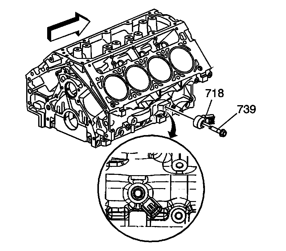 3. Remove the knock sensor bolt (739) and knock sensor (718).