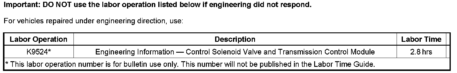 If the customer did not bring their vehicle in for this concern, DO NOT proceed with this bulletin. For all transmission repairs, if the repair action points to replacing the control solenoid valve and transmission control module, proceed with this bulletin.