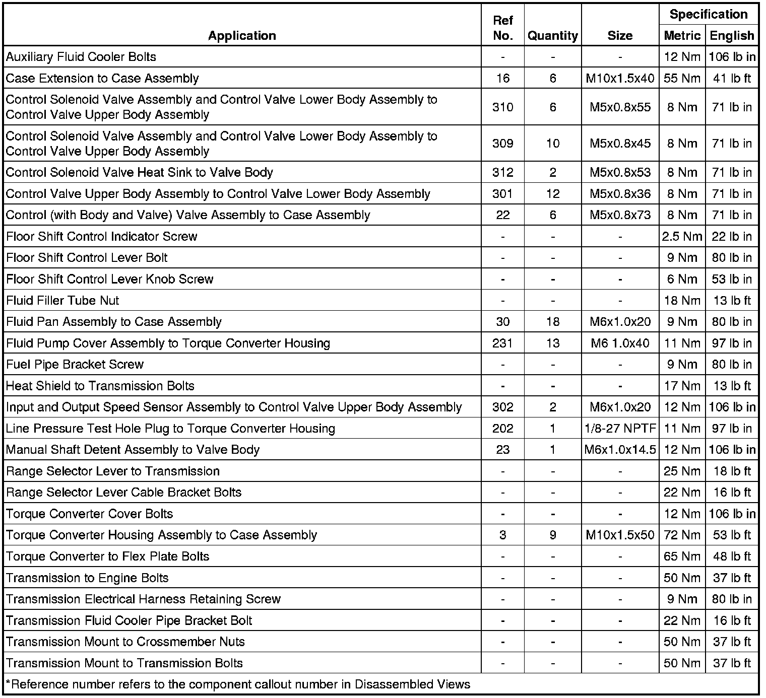 Fluid pan assembly to case assembly 9 Nm (80 lb in)