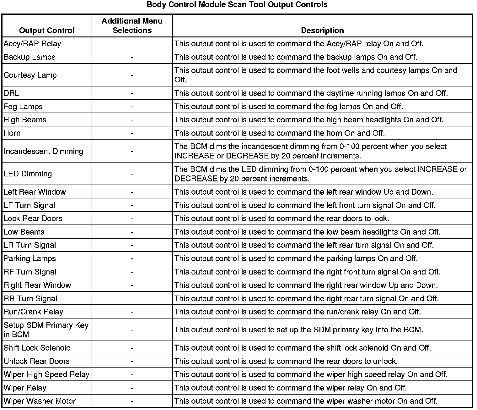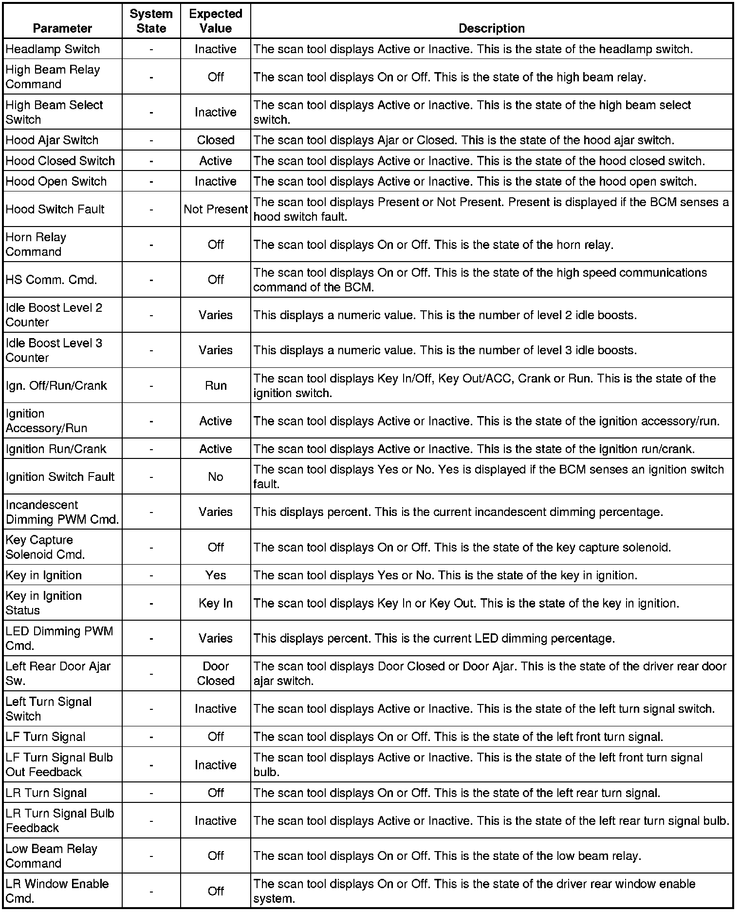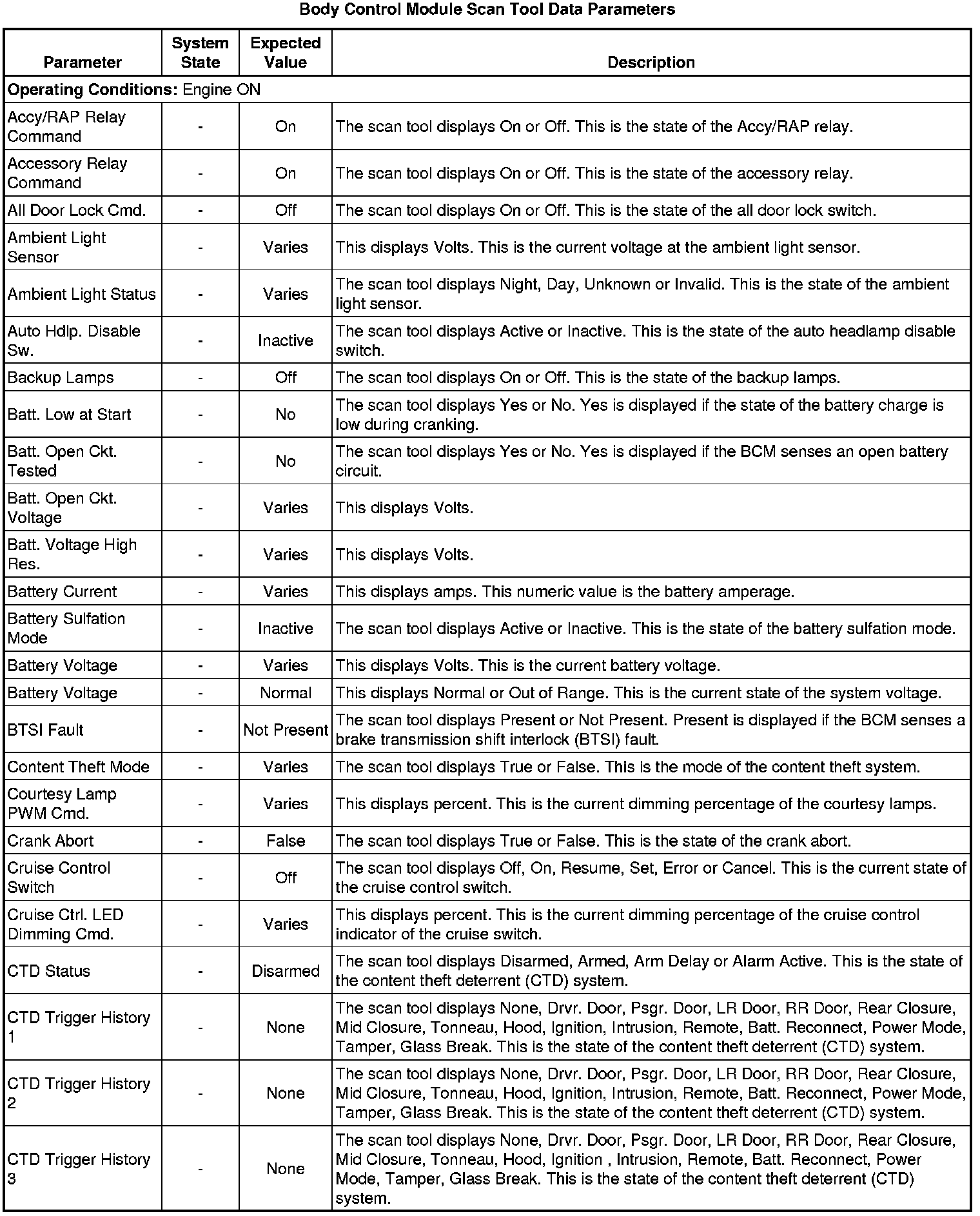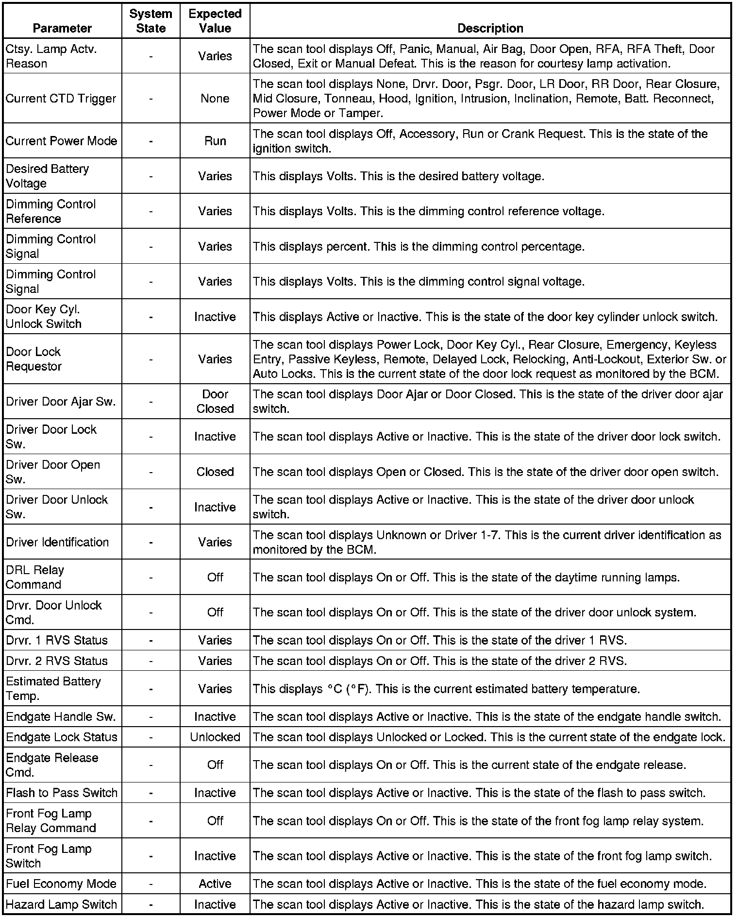 Body Control Module Scan Tool Information